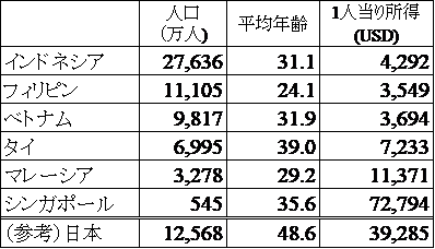 表:ASEAN主要国の統計値比較